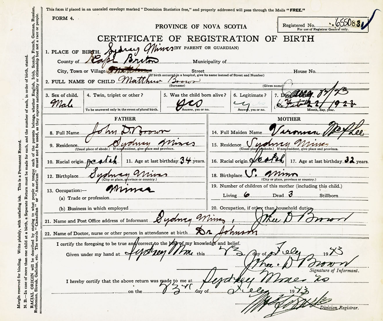 Male Birth Registration: Year: 1923 number: 65500083