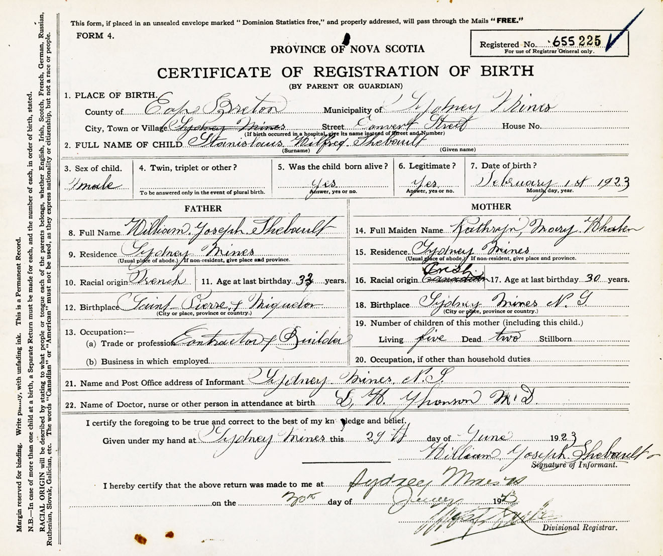 Male Birth Registration: Year: 1923 number: 65500225
