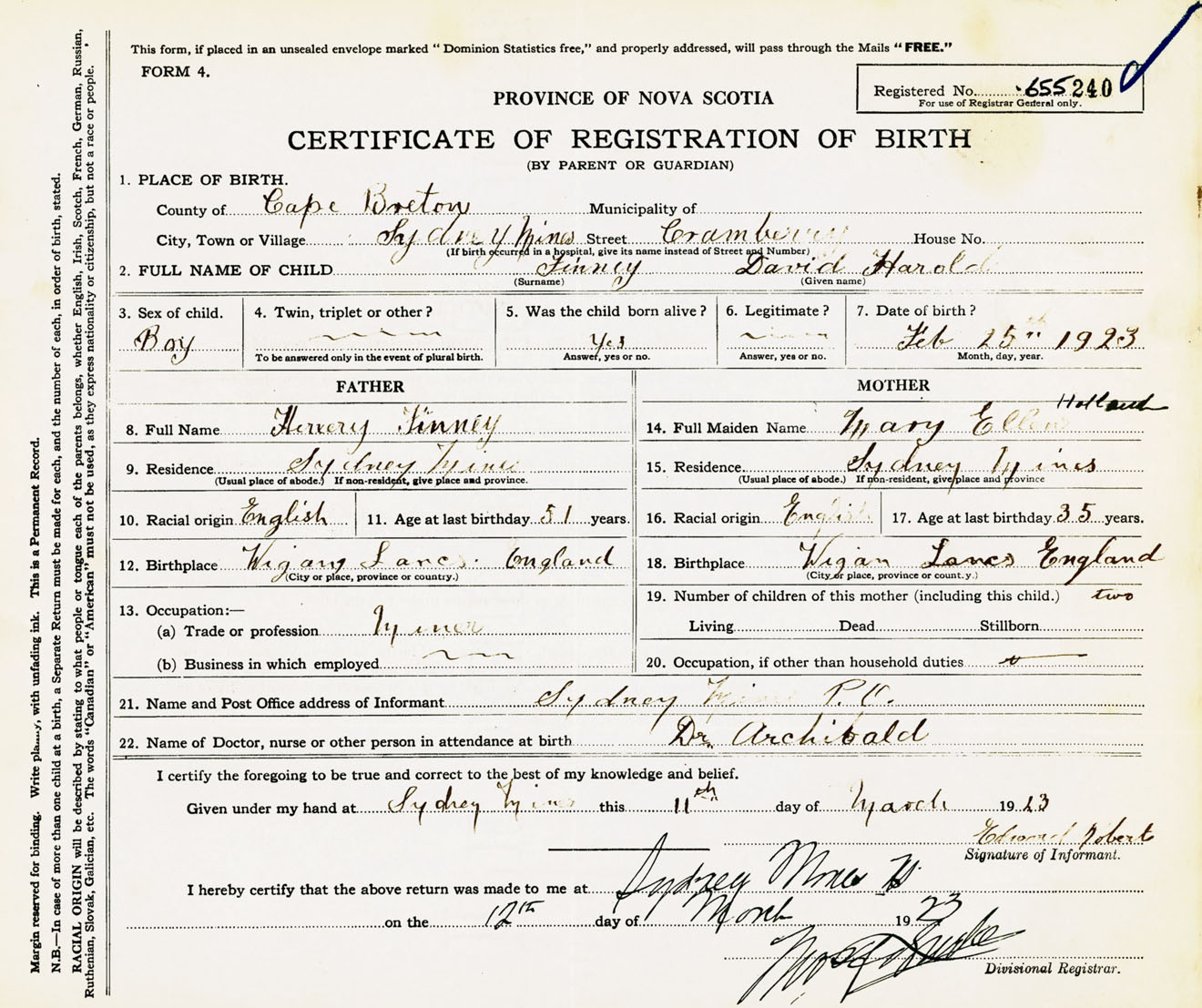 Male Birth Registration: Year: 1923 number: 65500240
