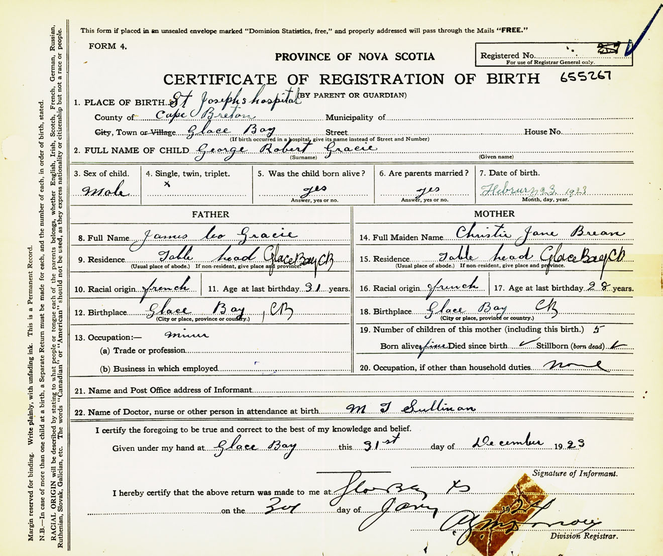 Male Birth Registration: Year: 1923 number: 65500267