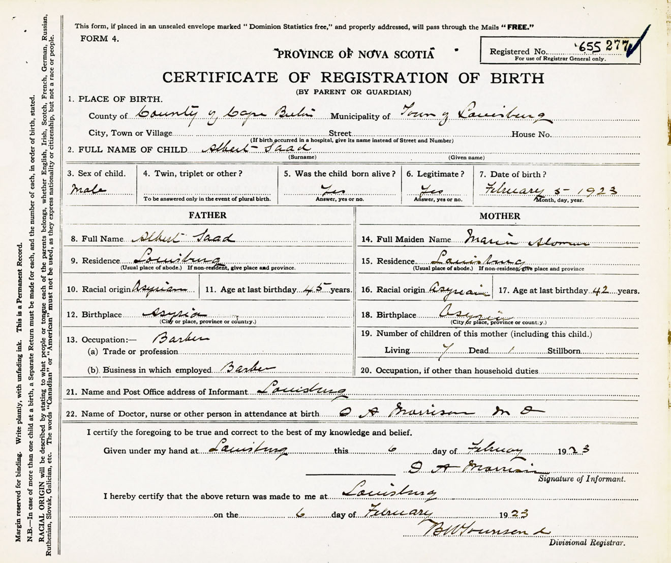 Nova Scotia Archives — https://archives.novascotia.ca/vital-statistics/birth/?ID=442629