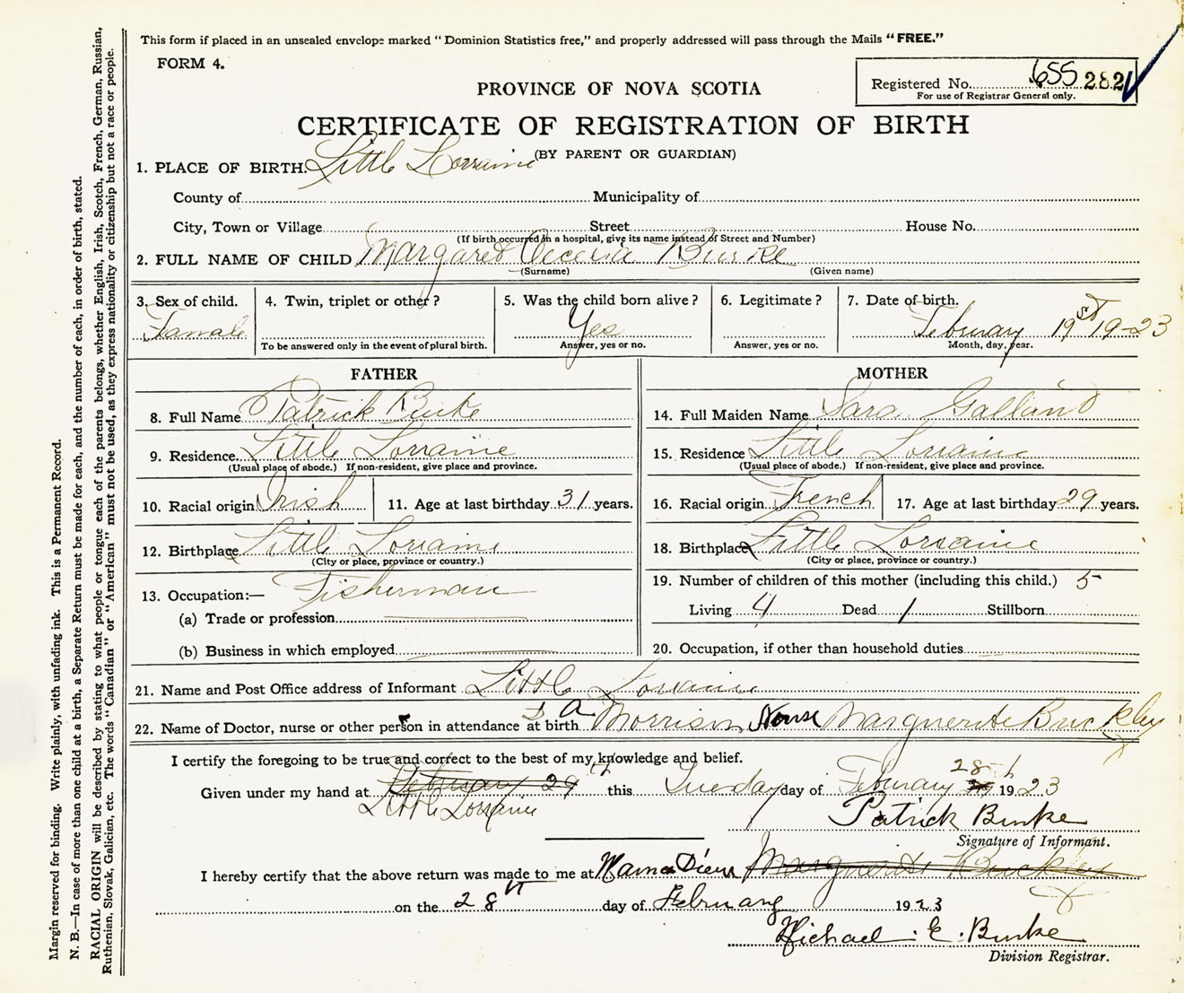Female Birth Registration: Year: 1923 number: 65500282
