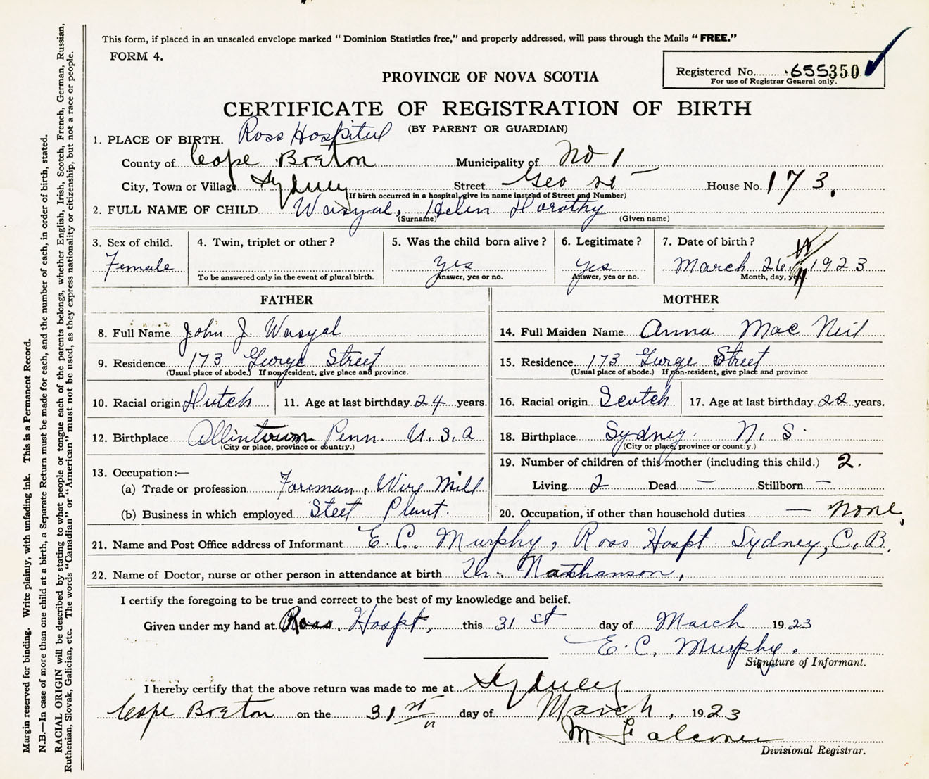 Nova Scotia Archives — https://archives.novascotia.ca/vital-statistics/birth/?ID=442702