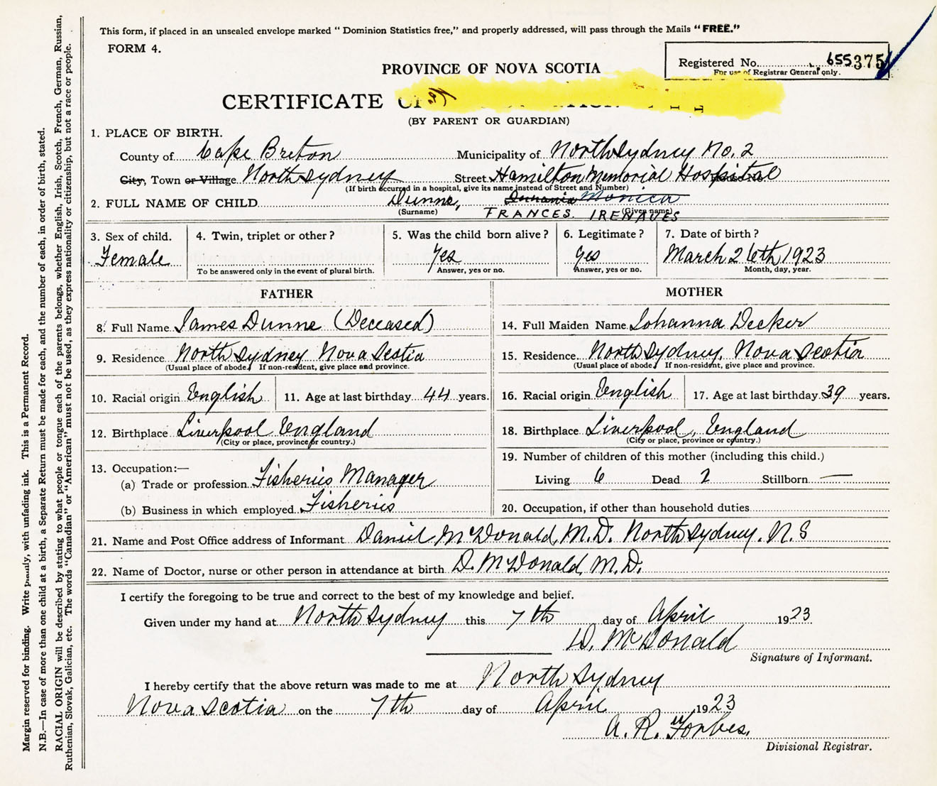 Nova Scotia Archives — https://archives.novascotia.ca/vital-statistics/birth/?ID=442727