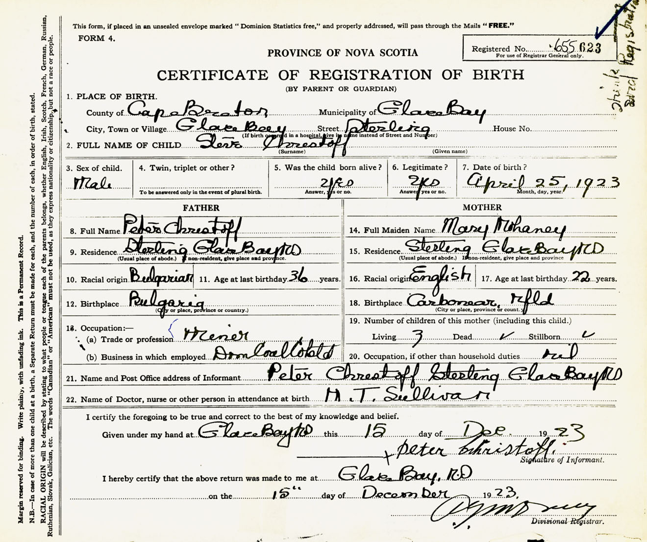 Male Birth Registration: Year: 1923 number: 65500623