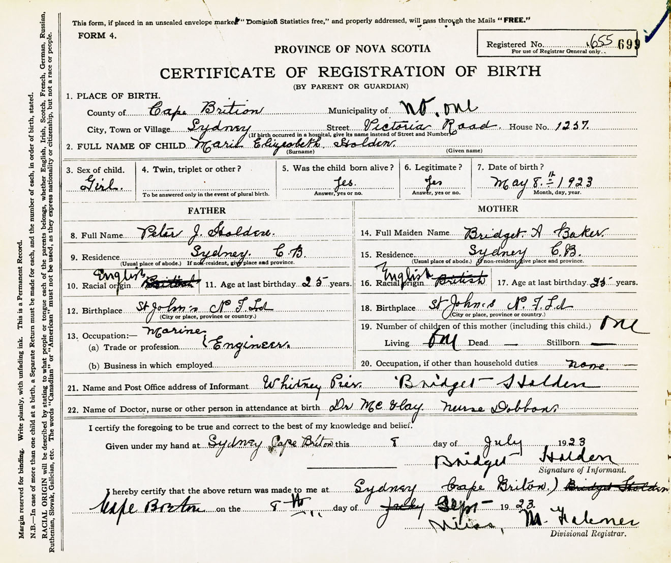 Female Birth Registration: Year: 1923 number: 65500699