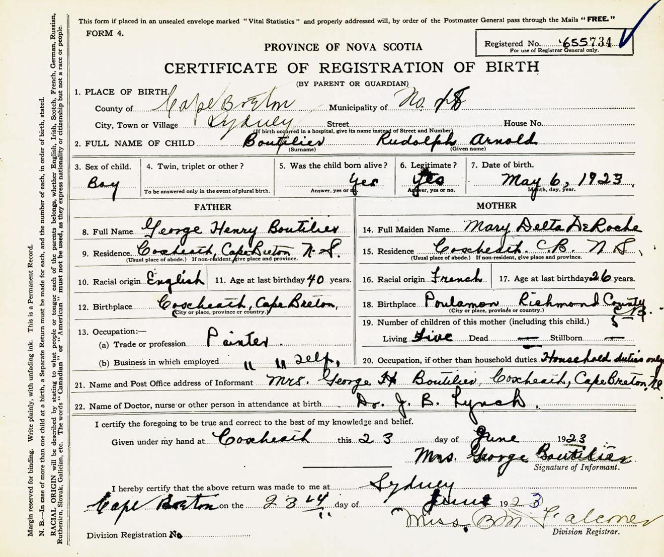 Male Birth Registration: Year: 1923 number: 65500734