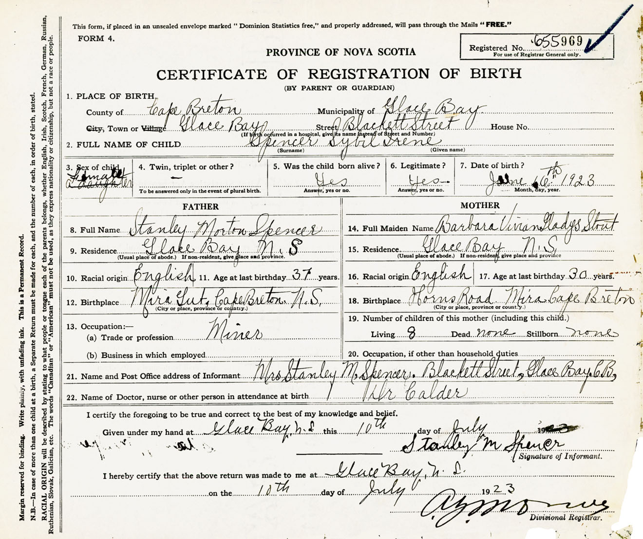 Female Birth Registration: Year: 1923 number: 65500969