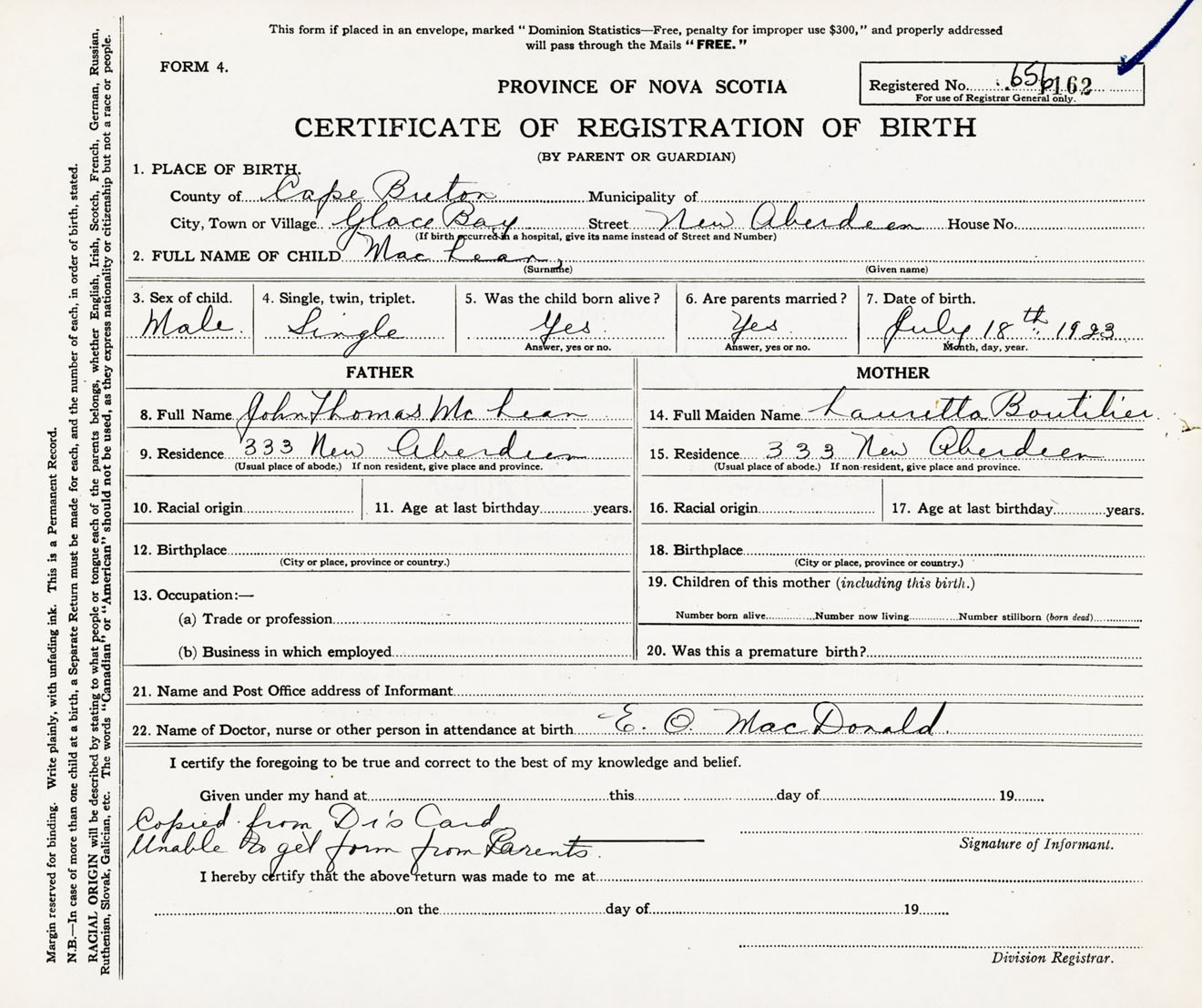 Nova Scotia Archives — https://archives.novascotia.ca/vital-statistics/birth/?ID=443511