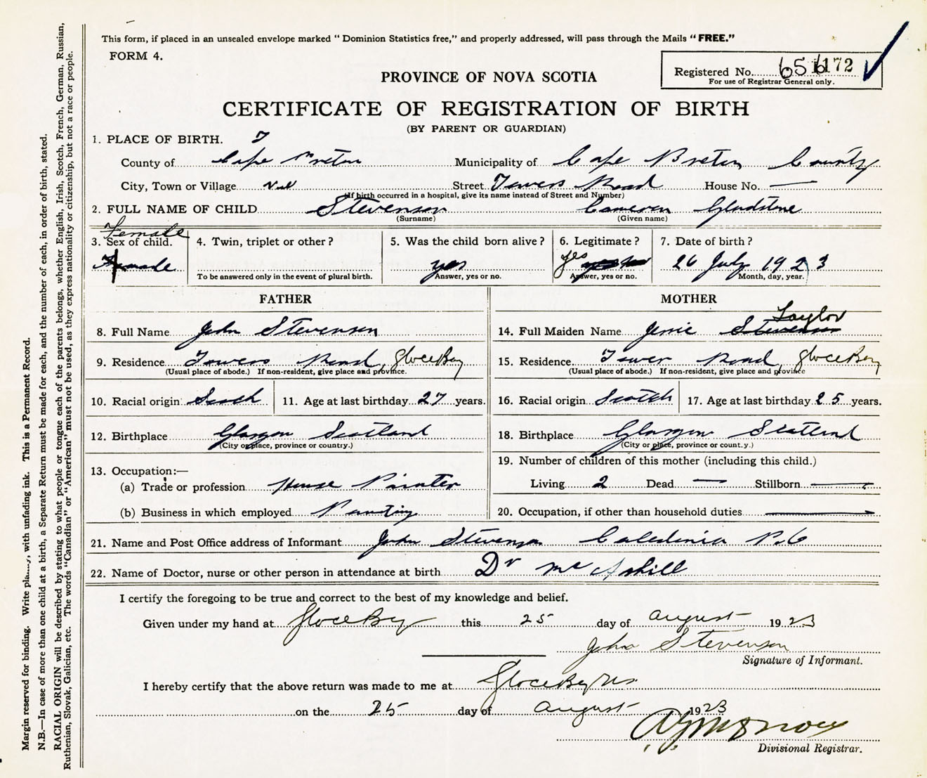 Nova Scotia Archives — https://archives.novascotia.ca/vital-statistics/birth/?ID=443521