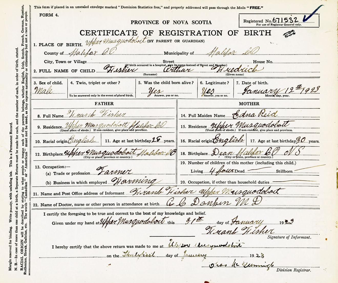 Male Birth Registration: Year: 1923 number: 67100532