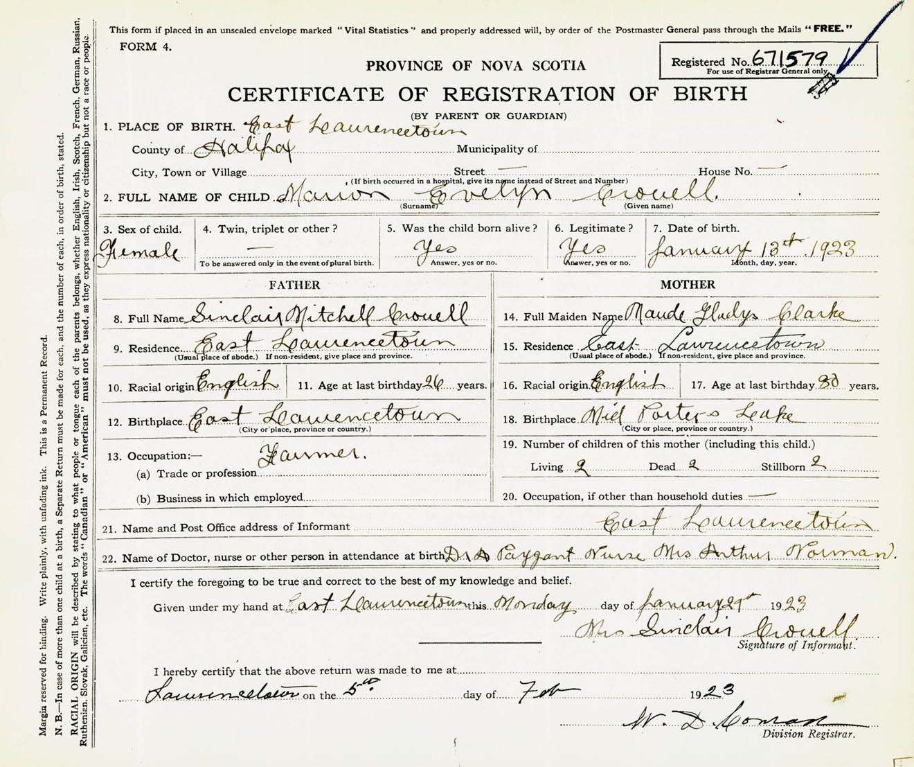 Nova Scotia Archives — https://archives.novascotia.ca/vital-statistics/birth/?ID=443942