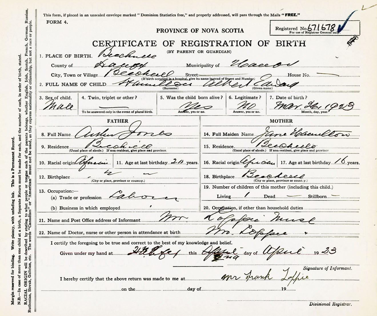 Male Birth Registration: Year: 1923 number: 67100678