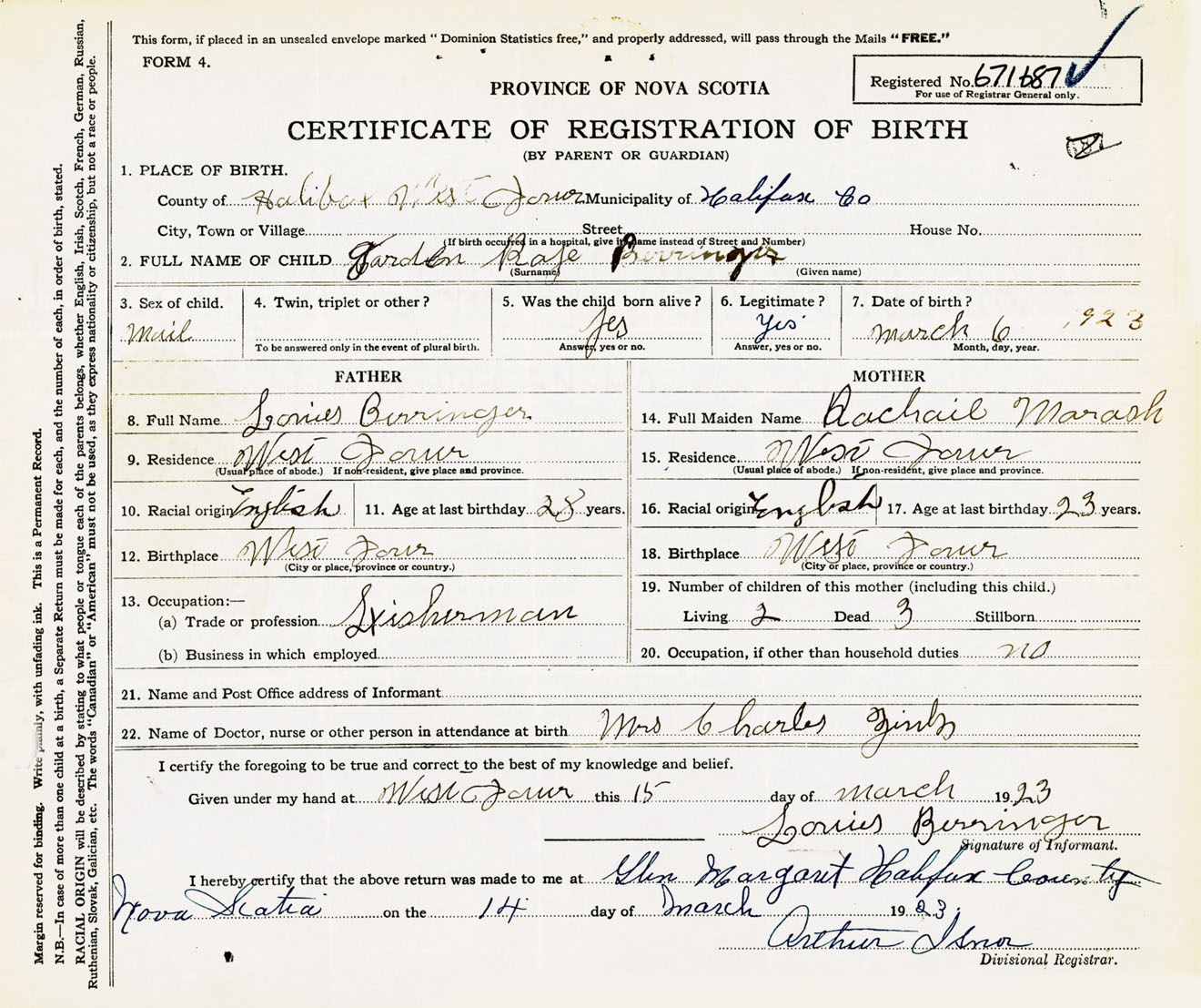 Male Birth Registration: Year: 1923 number: 67100687