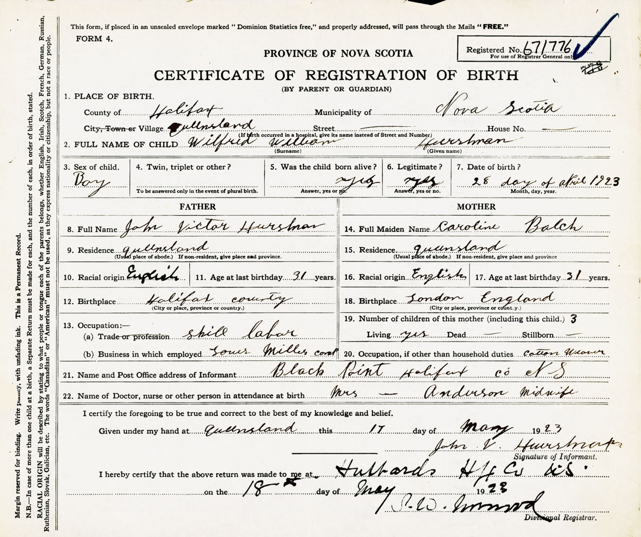 Male Birth Registration: Year: 1923 number: 67100776