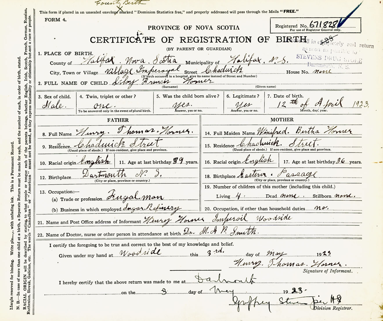 Male Birth Registration: Year: 1923 number: 67100828