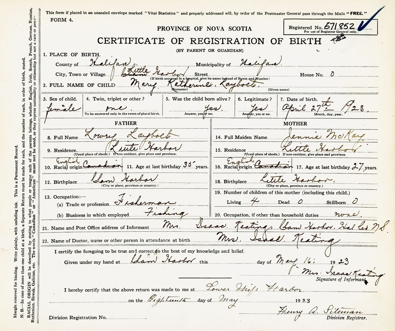 Nova Scotia Archives — https://archives.novascotia.ca/vital-statistics/birth/?ID=444214