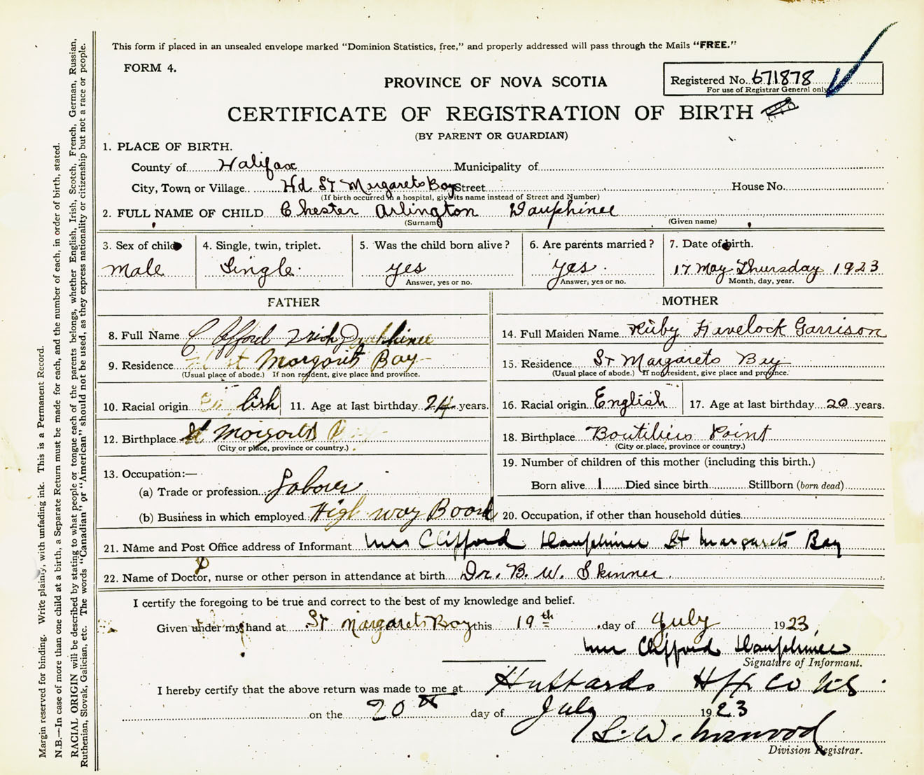 Male Birth Registration: Year: 1923 number: 67100878