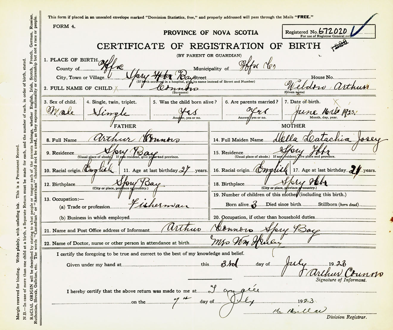 Male Birth Registration: Year: 1923 number: 67200020