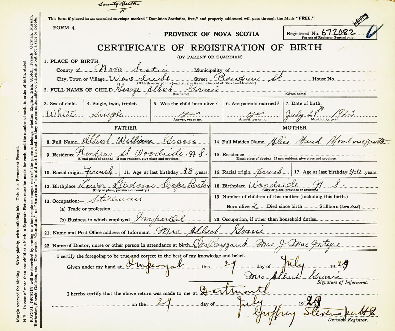 Birth Registration: Year: 1923 number: 67200082