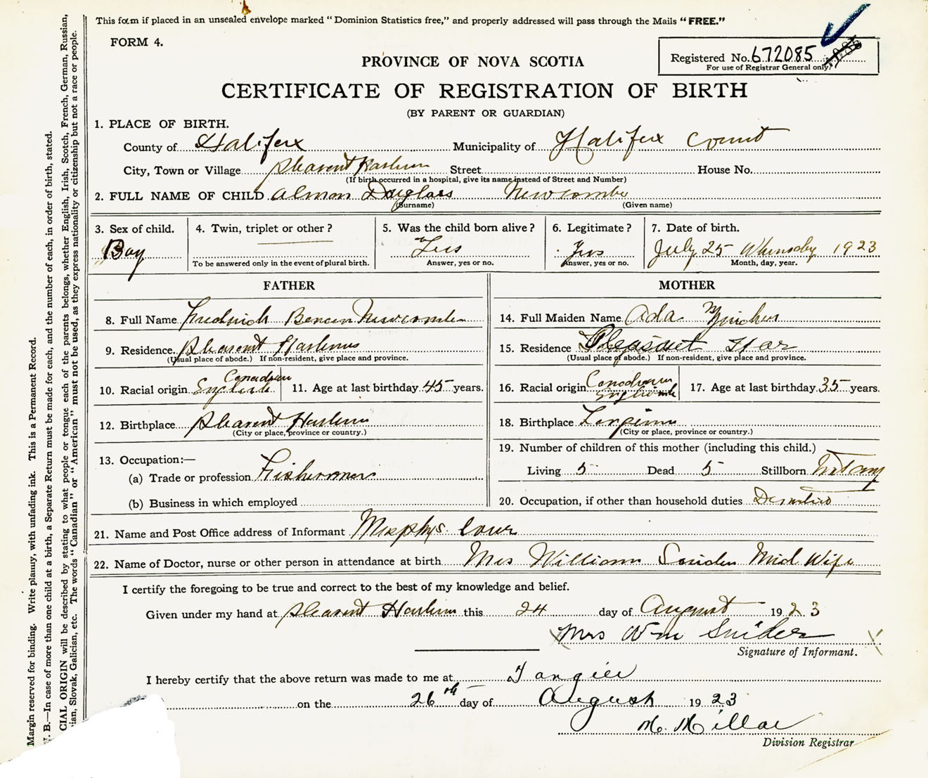 Male Birth Registration: Year: 1923 number: 67200085