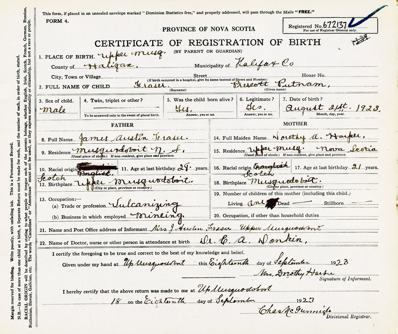 Male Birth Registration: Year: 1923 number: 67200137