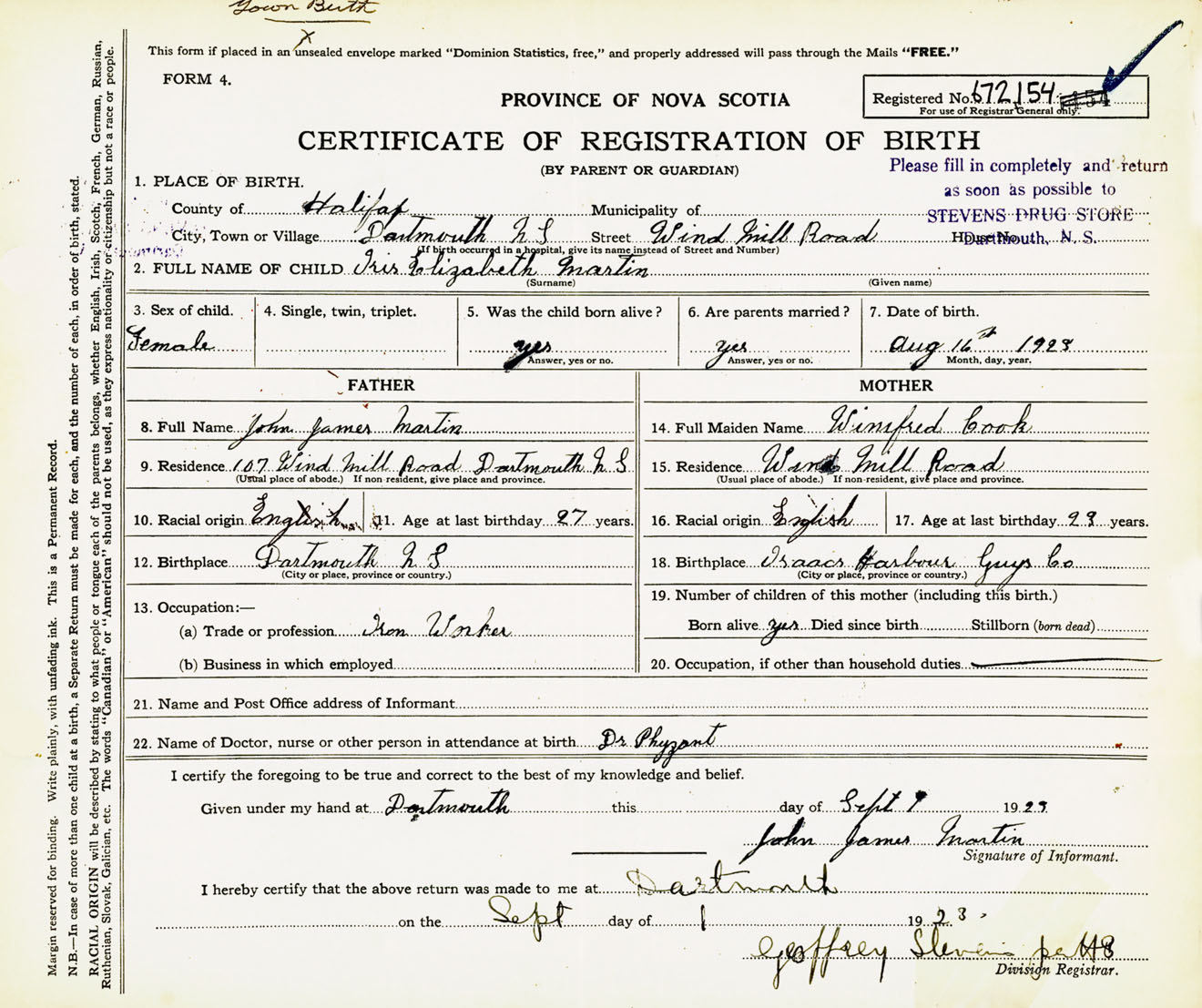 Female Birth Registration: Year: 1923 number: 67200154