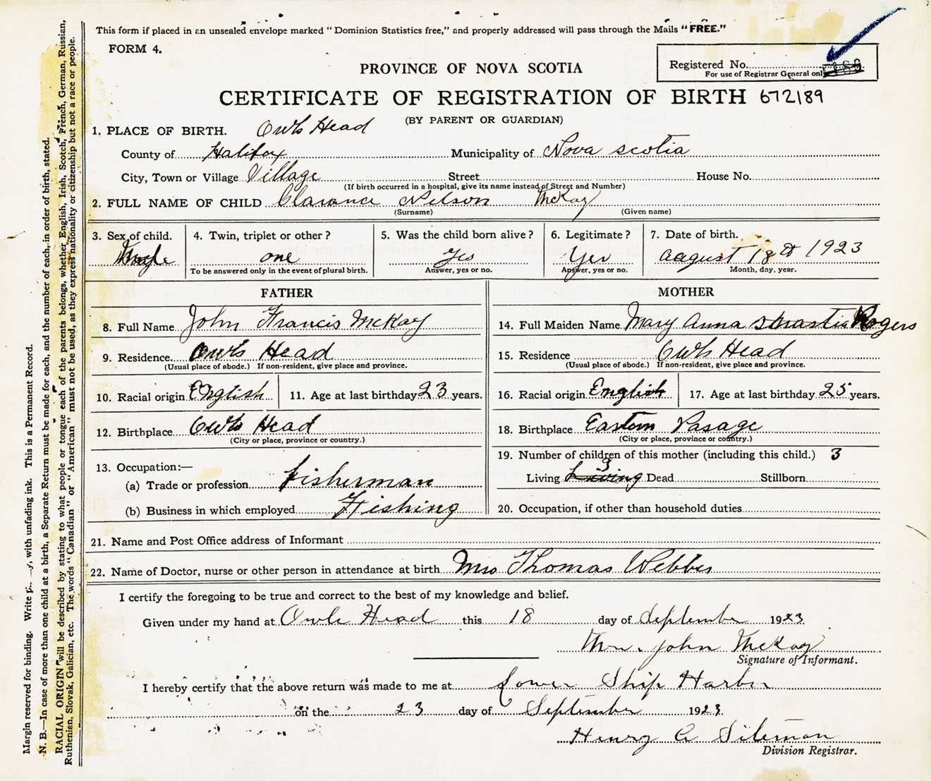 Male Birth Registration: Year: 1923 number: 67200189
