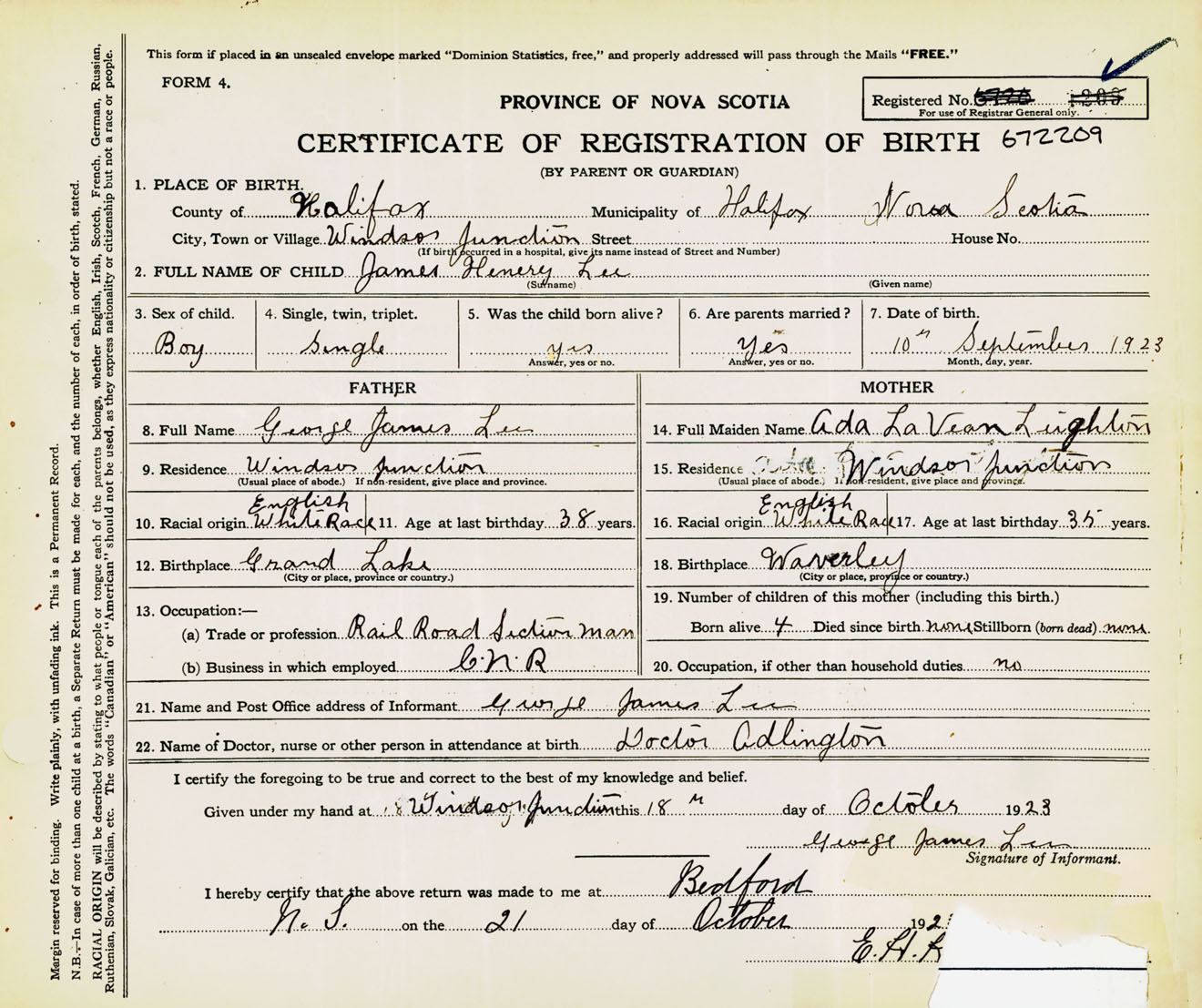 Male Birth Registration: Year: 1923 number: 67200209