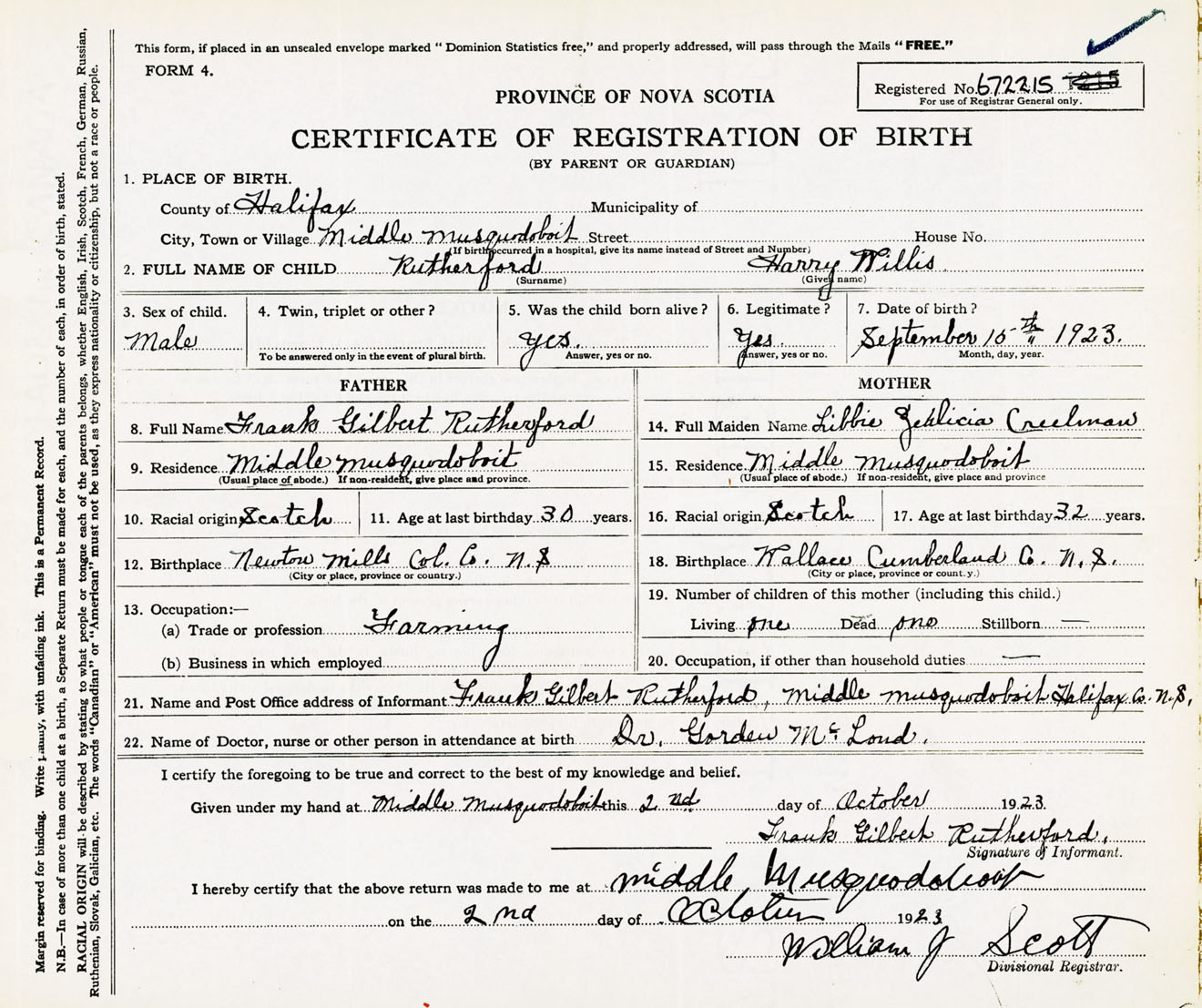 Male Birth Registration: Year: 1923 number: 67200215