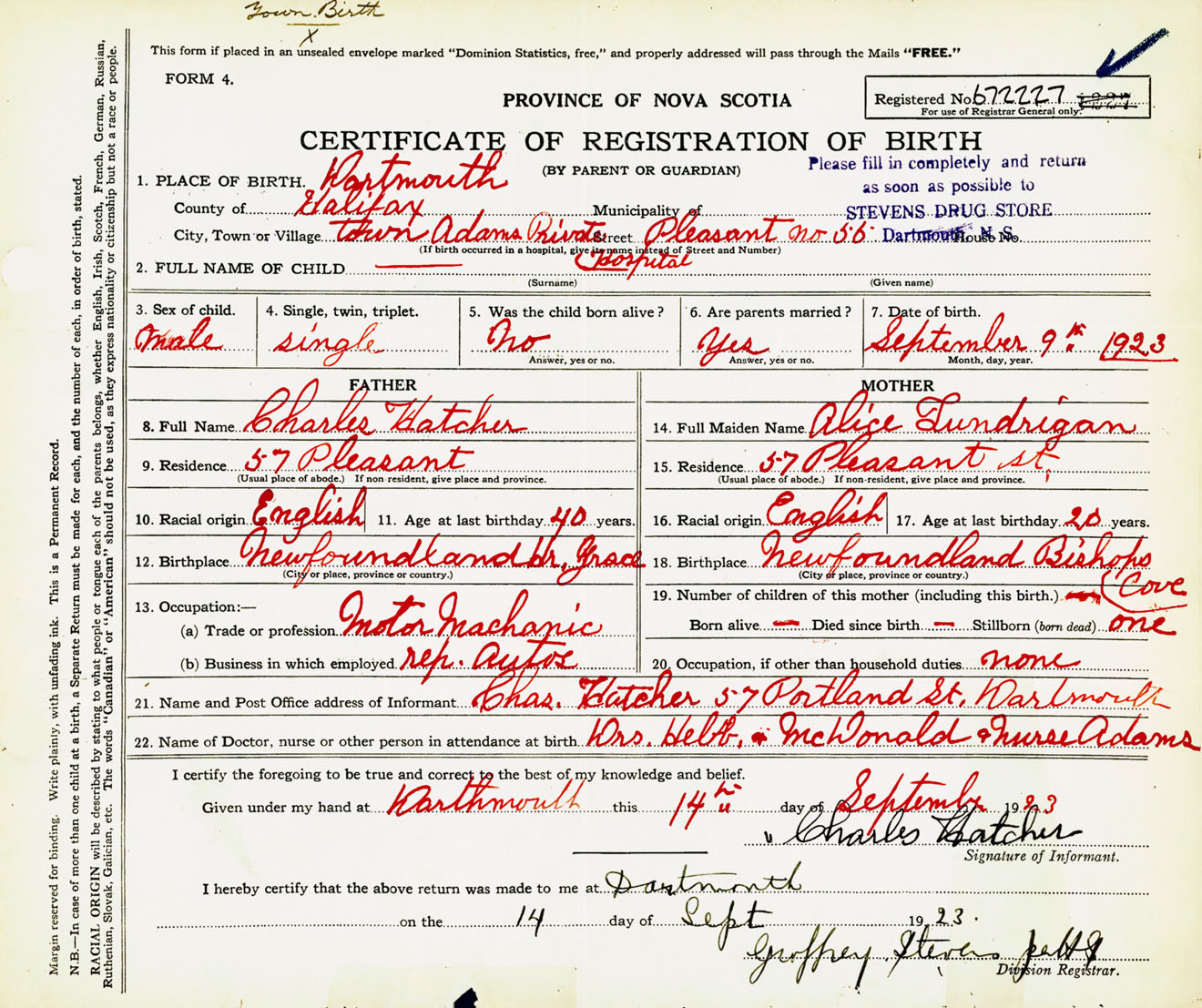 Male Birth Registration: Year: 1923 number: 67200227