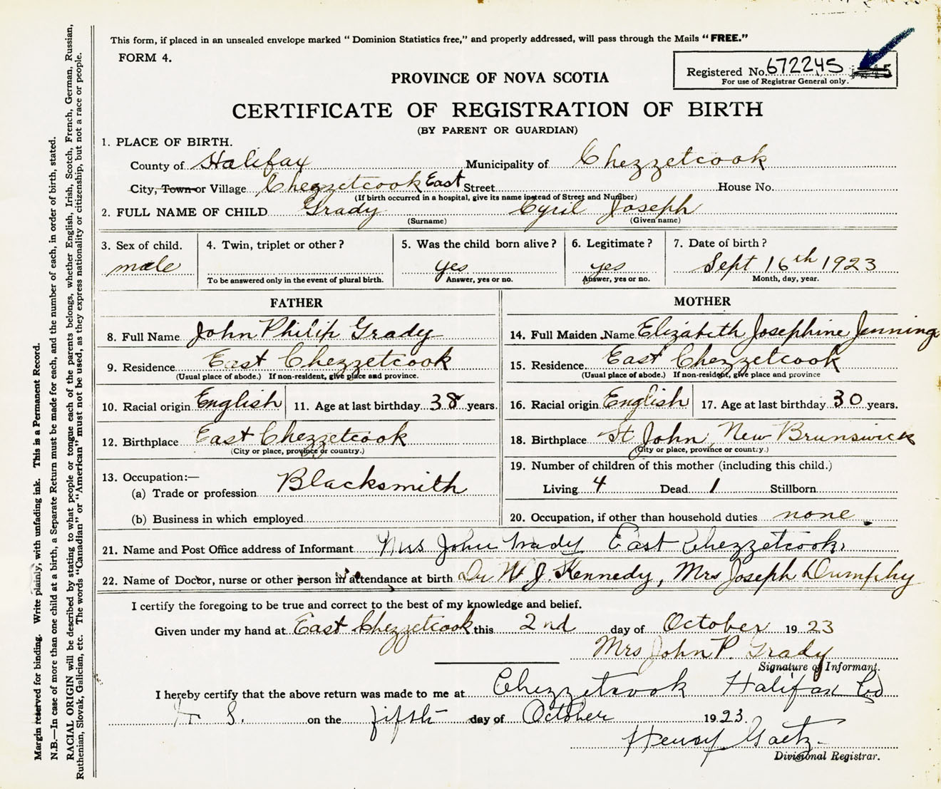 Male Birth Registration: Year: 1923 number: 67200245