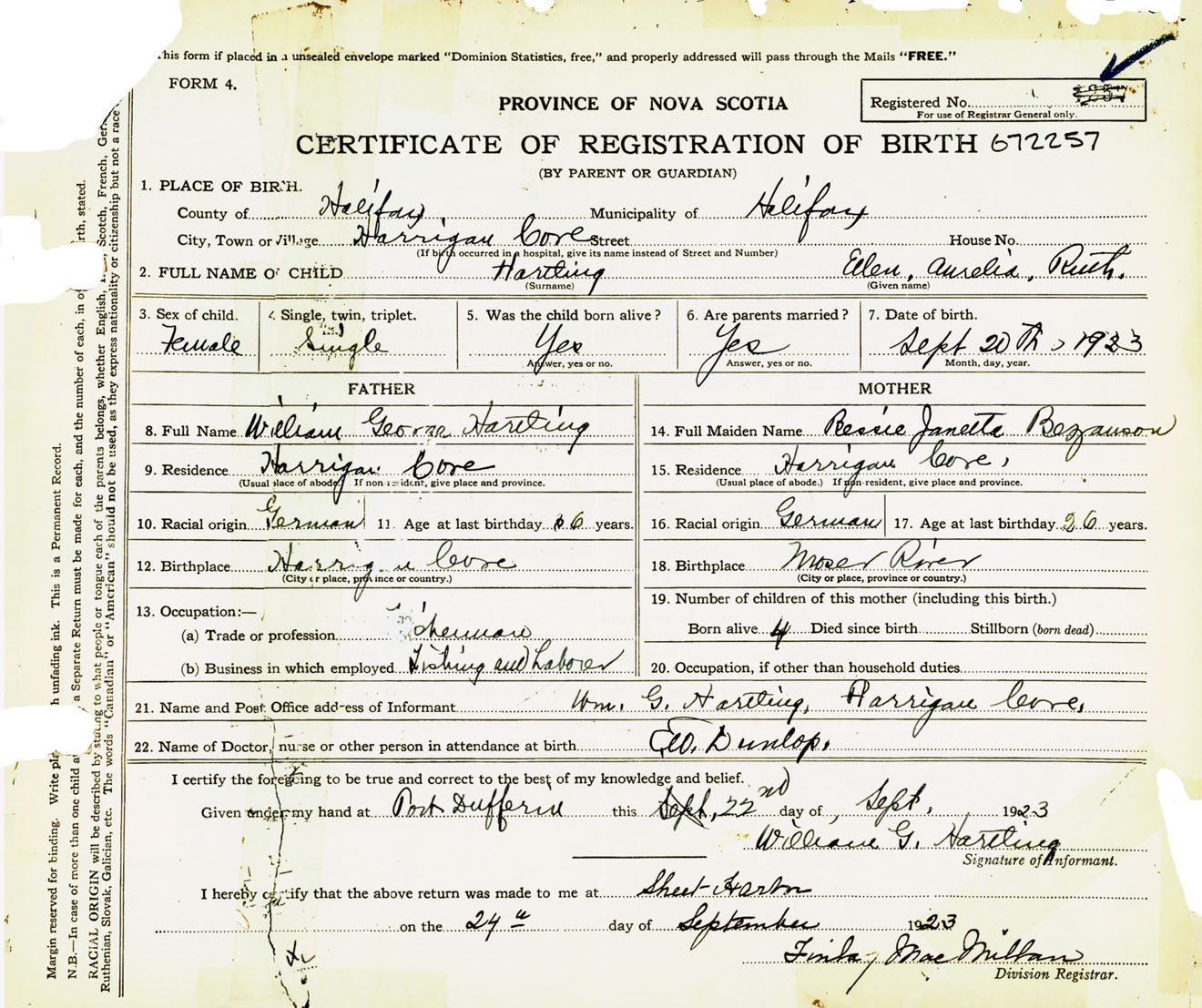 Female Birth Registration: Year: 1923 number: 67200257