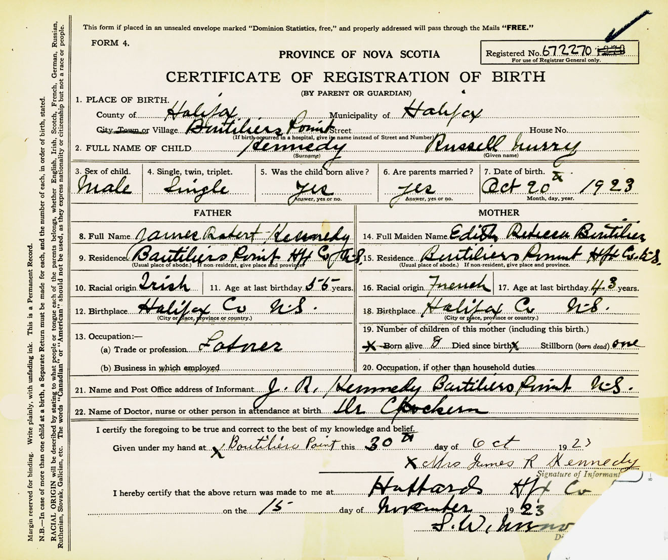 Male Birth Registration: Year: 1923 number: 67200270