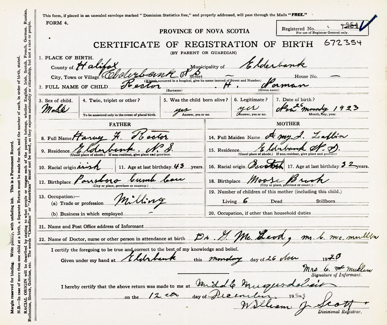 Male Birth Registration: Year: 1923 number: 67200354