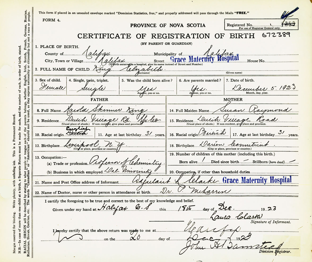 Female Birth Registration: Year: 1923 number: 67200389