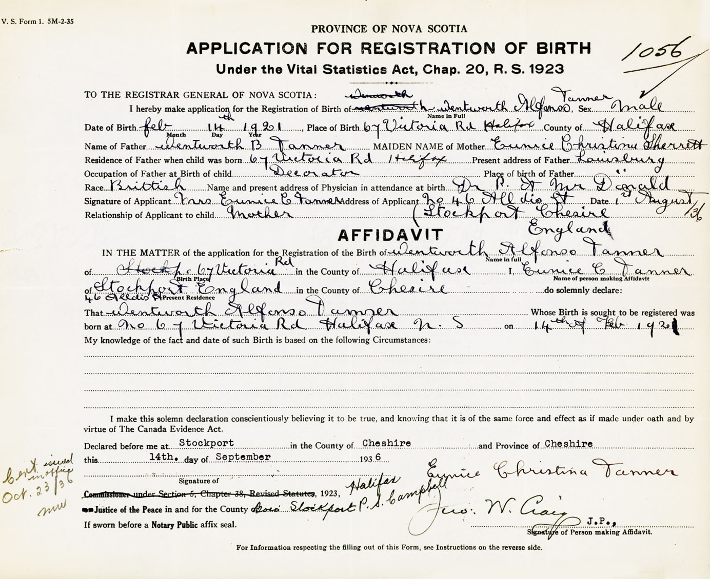 Born at 67 Victoria Road, Halifax in the County of Halifax