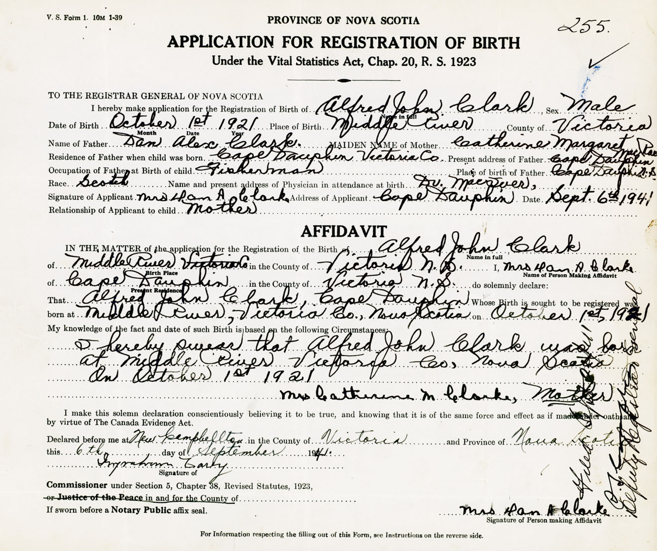 Male Birth Registration: Year: 1923 number: 91400255