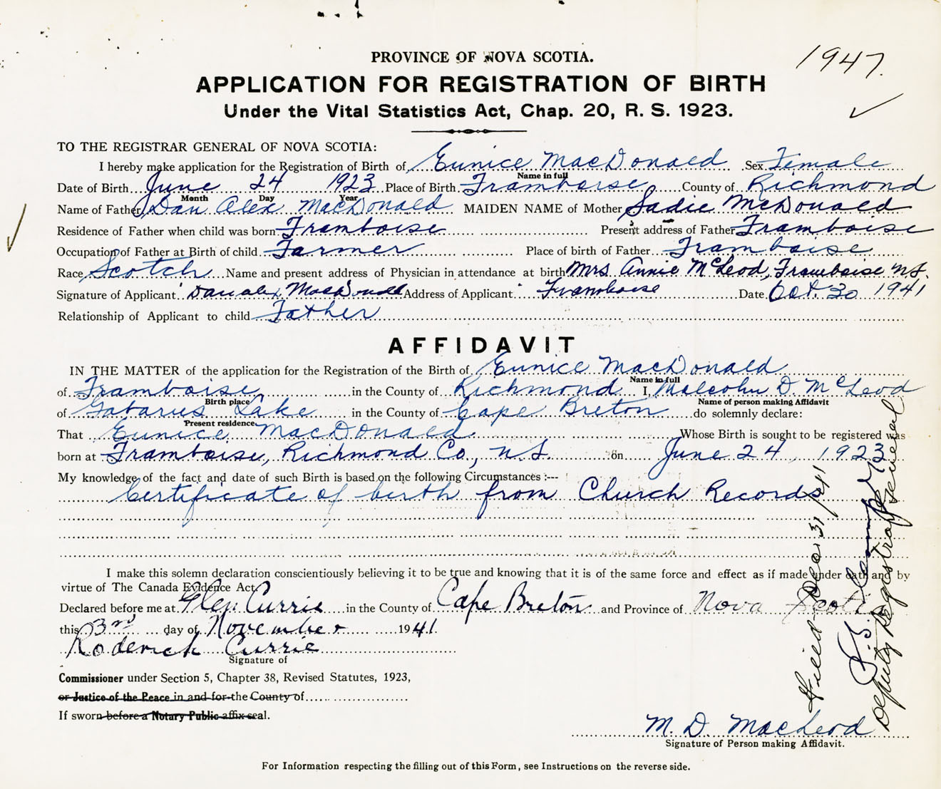 IN THE MATTER of the application for the Registration of the Birth of EurniceMacDonald