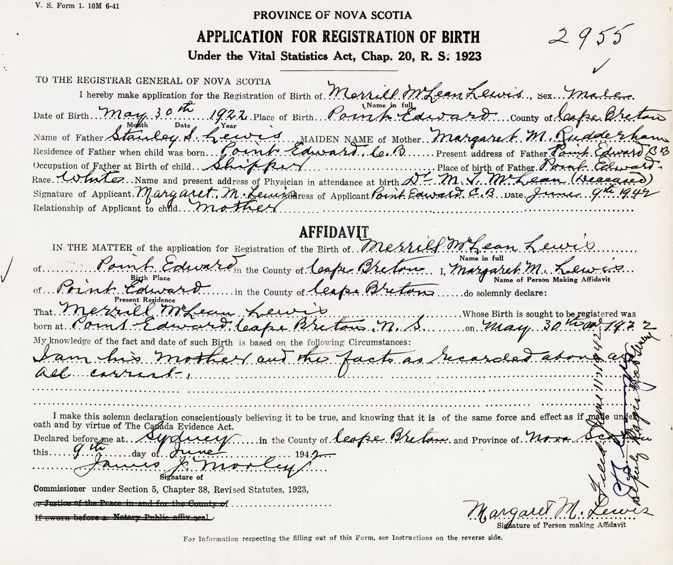 Nova Scotia Archives — https://archives.novascotia.ca/vital-statistics/birth/?ID=445033