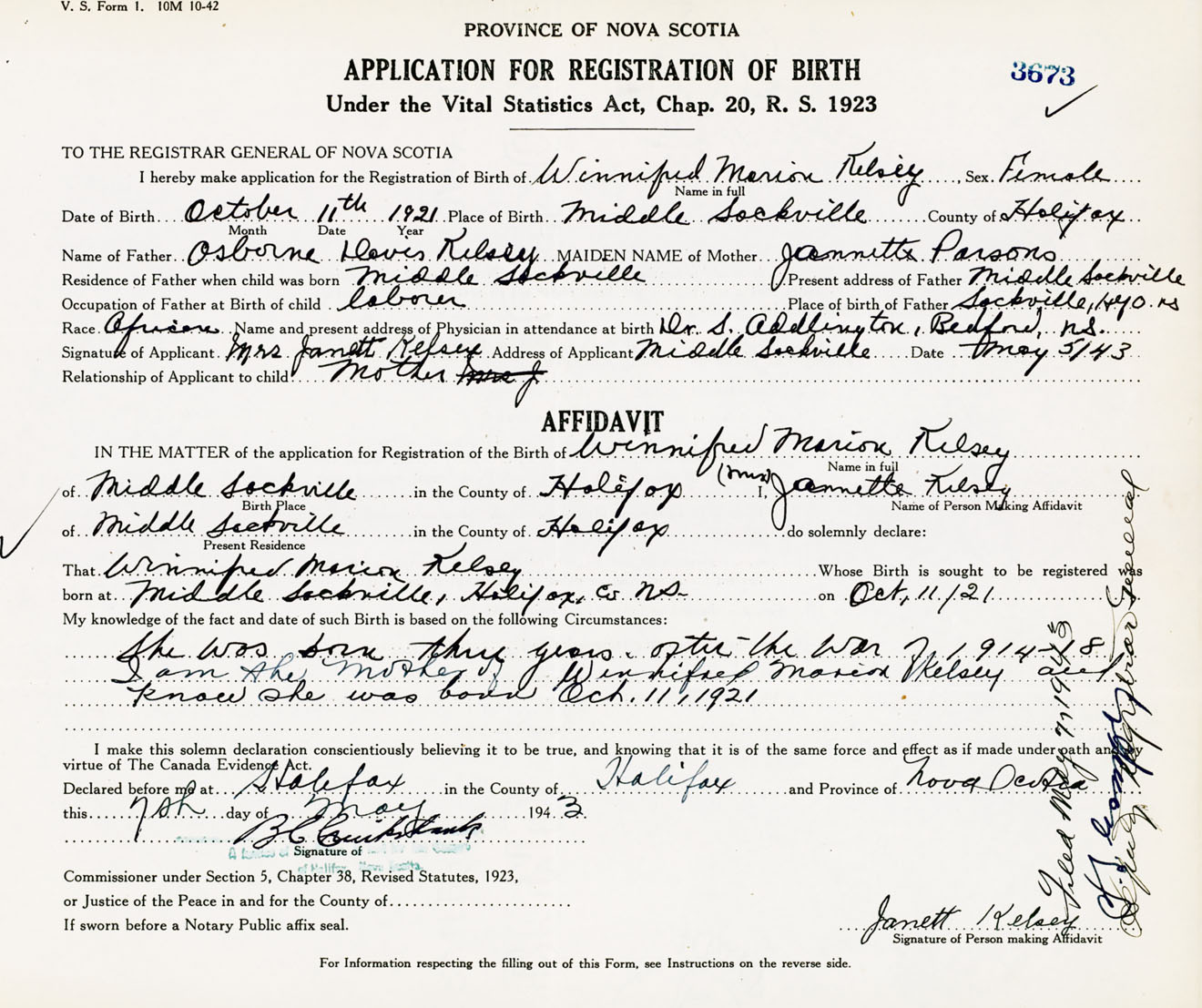 Date of Birth October 11, 1921 Place of Birth Middle SackvilleCounty of Halifax