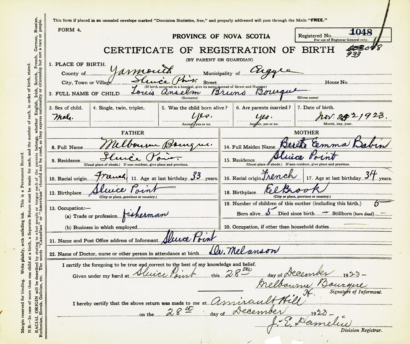 Male Birth Registration: Year: 1923 number: 93300048
