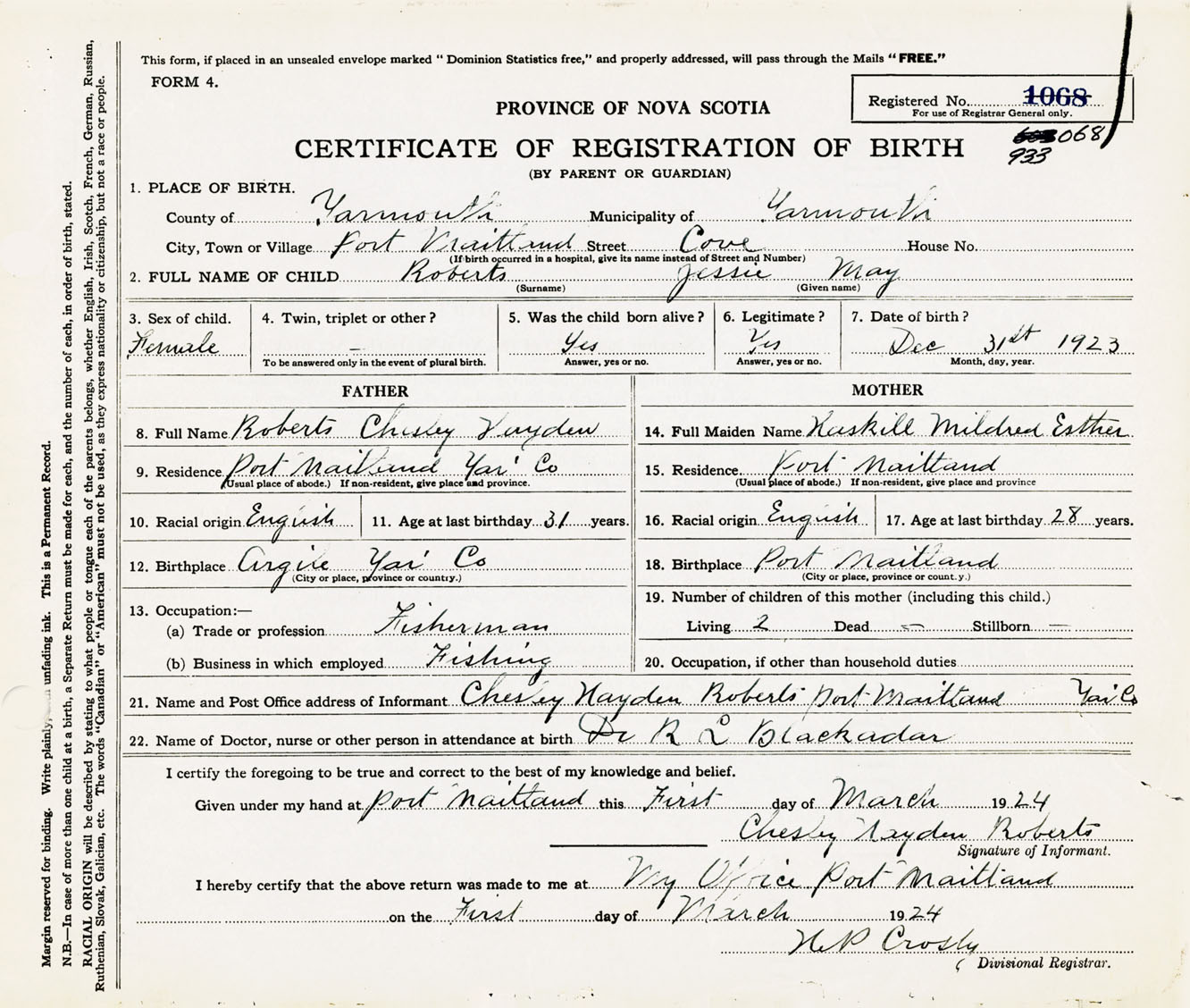 Nova Scotia Archives — https://archives.novascotia.ca/vital-statistics/birth/?ID=445417