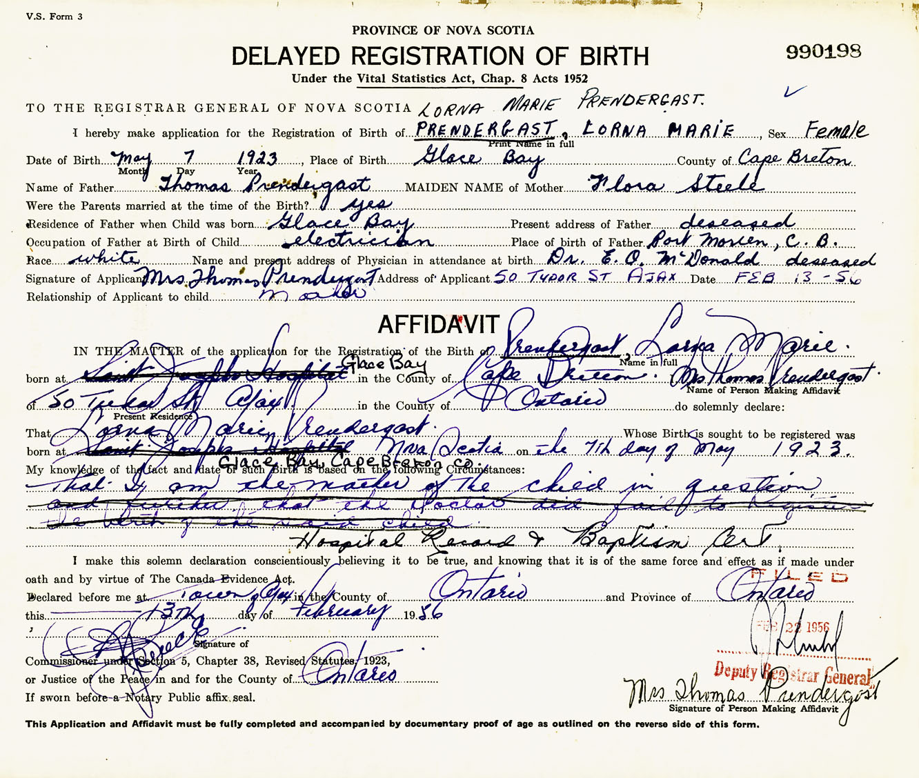 Date of Birth May 7, 1923 Place of Birth Glace BayCounty of Cape Breton