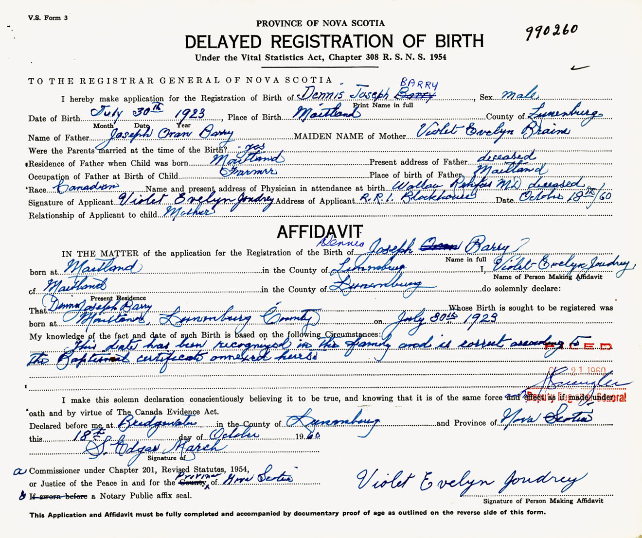 Date of Birth July 30, 1923 Place of Birth MaitlandCounty of Lunenburg