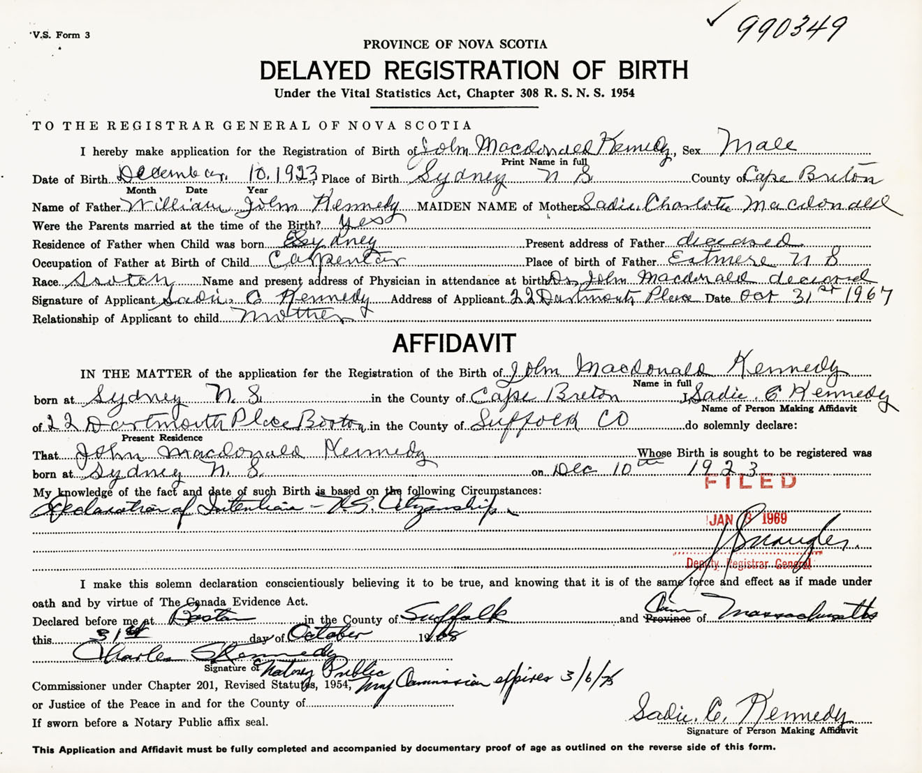 That John MacDonaldKennedy Whose Birth is sought to be registered was