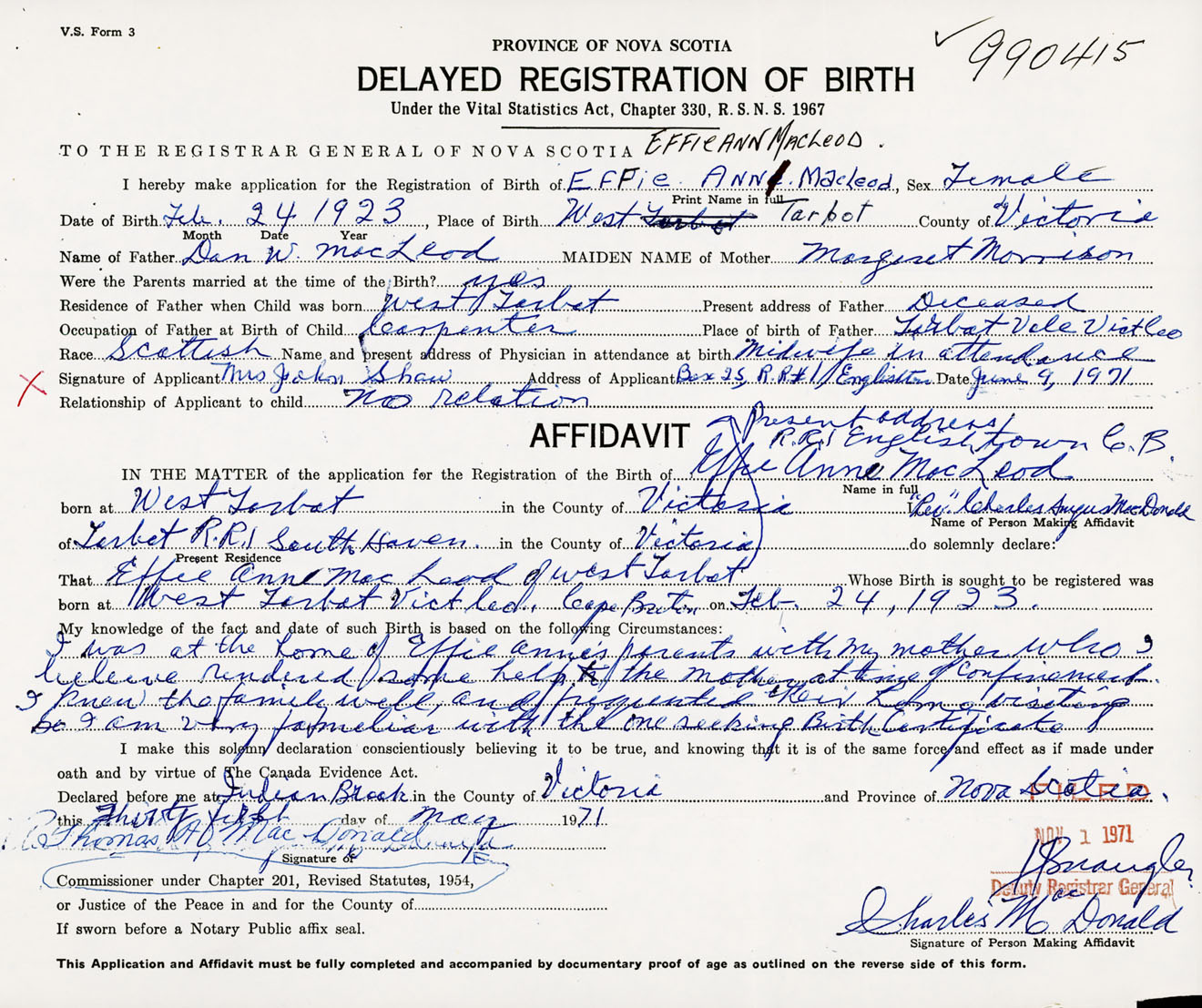 That Effie AnnMacLeod Whose Birth is sought to be registered was