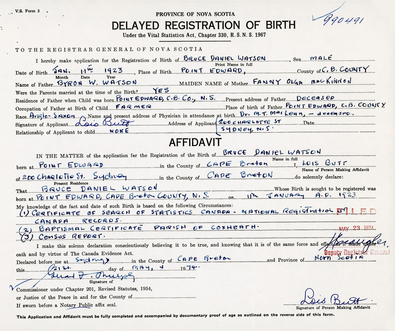 Date of Birth January 11, 1923 Place of Birth Point EdwardCounty of Cape Breton