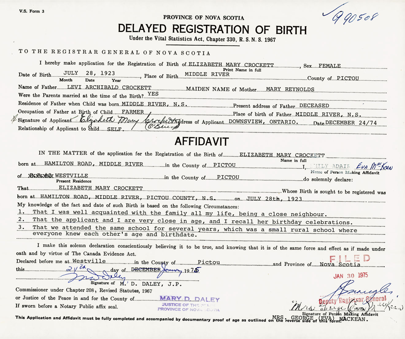 IN THE MATTER of the application for the Registration of the Birth of Elizabeth MaryCrockett
