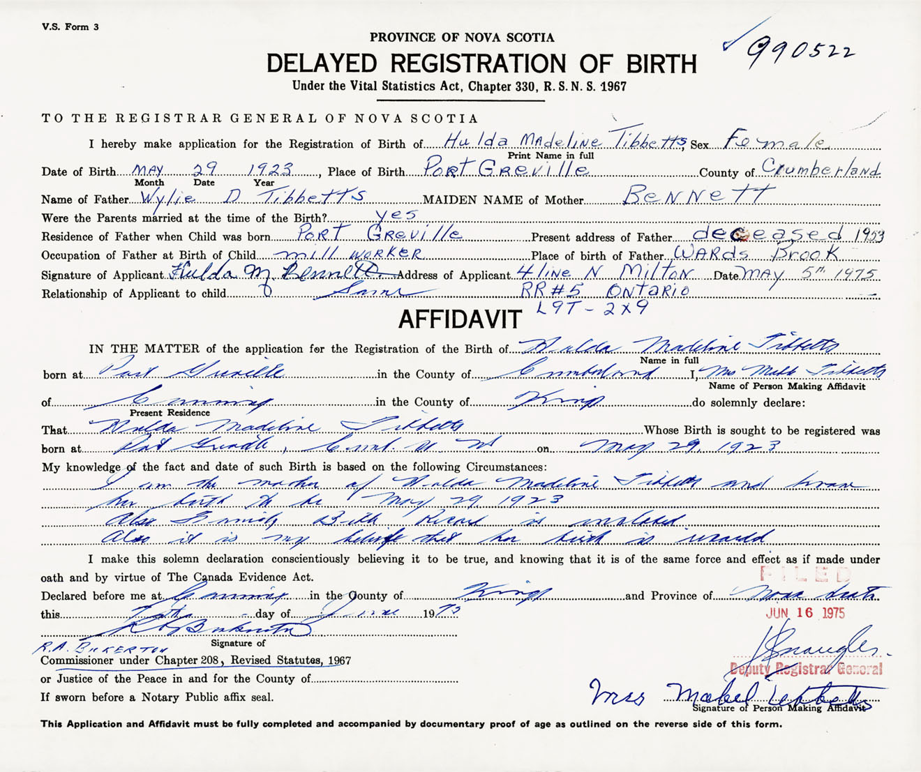 IN THE MATTER of the application for the Registration of the Birth of Halda MadelineTibbetts
